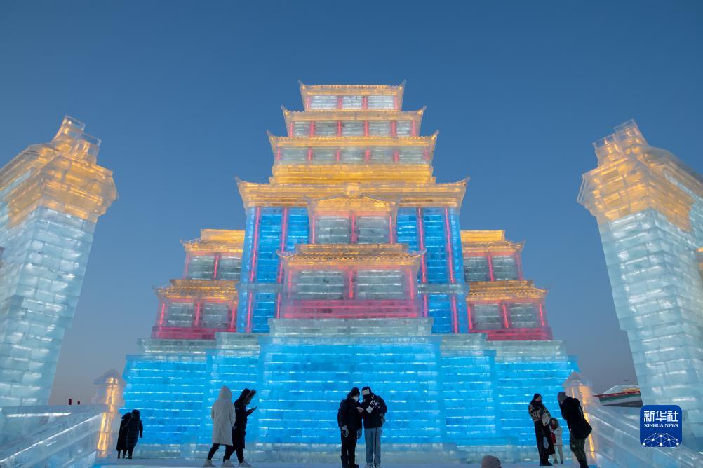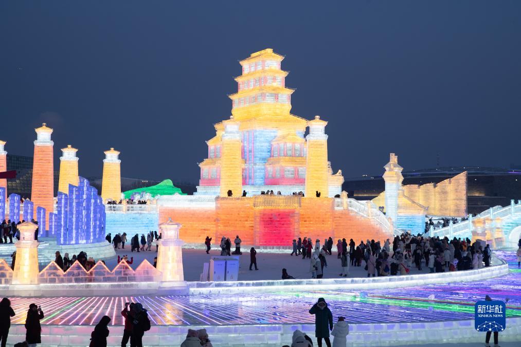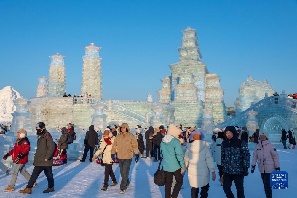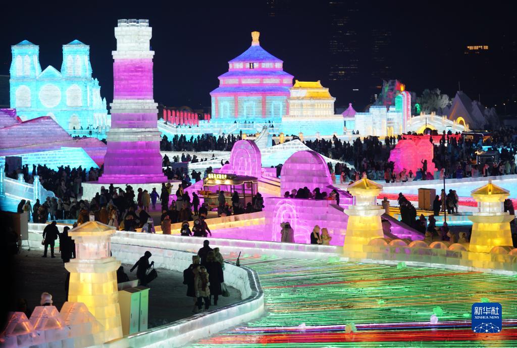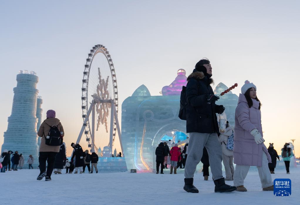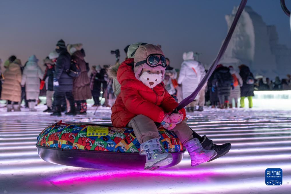 12月18日,游客在哈尔滨冰雪大世界园区游玩。新华社记者 张涛 摄
