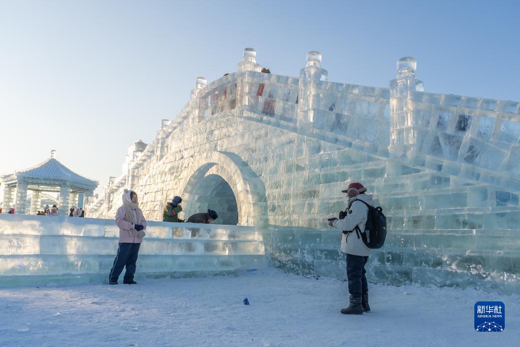 12月18日,游客在哈尔滨冰雪大世界园区内拍照留念。新华社记者 王大禹 摄