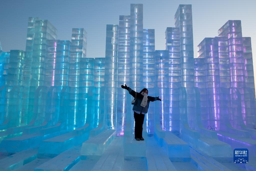 12月18日,游客在哈尔滨冰雪大世界园区留影。新华社记者 张涛 摄