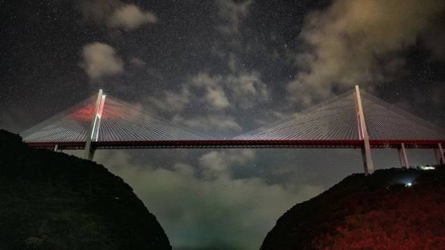 2022年7月24日拍摄的“中国天眼”夜景(维护保养期间拍摄,无人机光绘)。新华社记者 欧东衢 摄