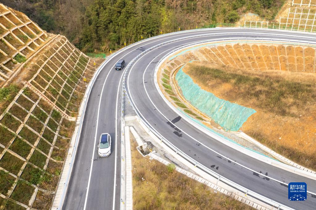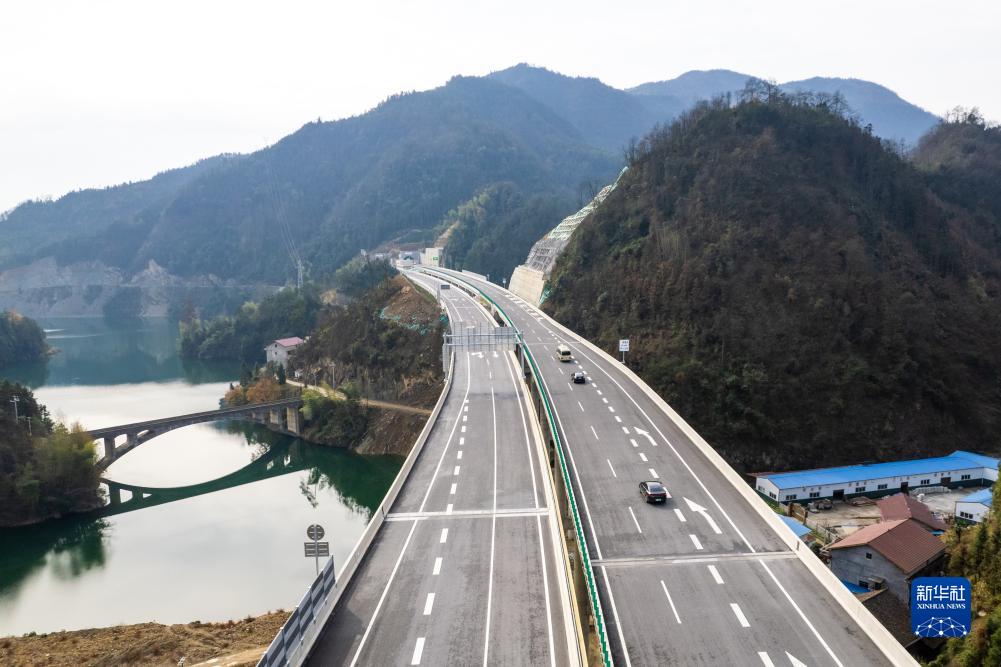 12月19日,车辆行驶在官新高速上(无人机照片)。新华社记者 陈思汗 摄