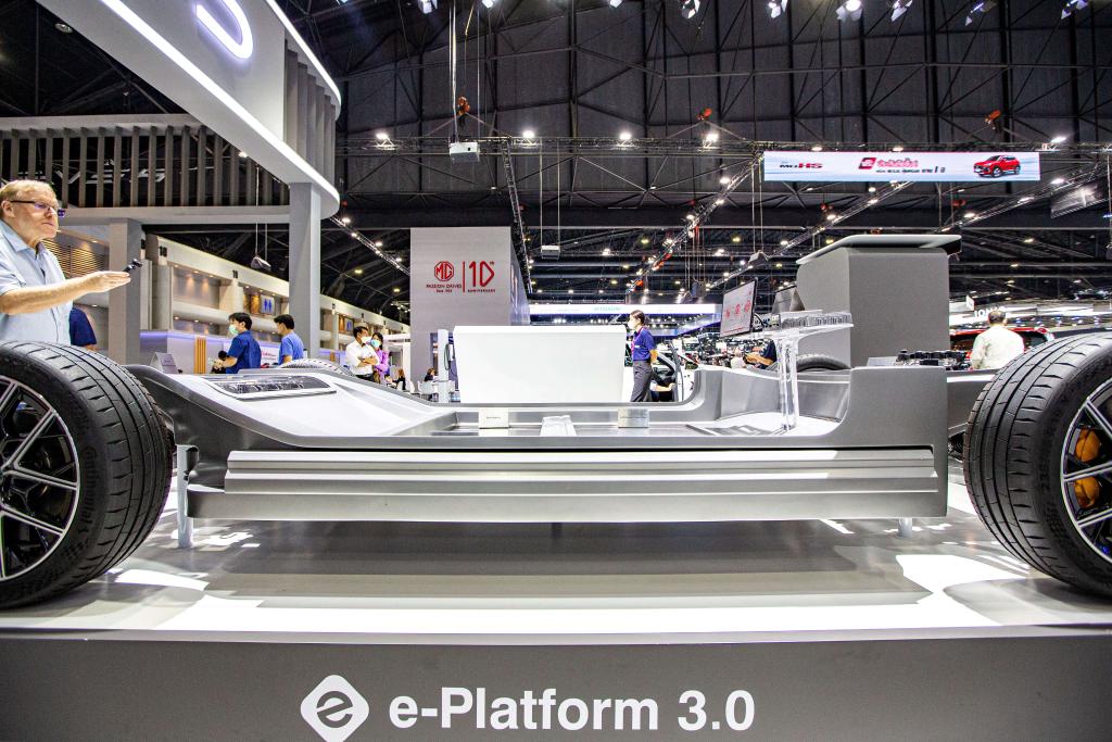 2023年12月6日,观众在曼谷举行的泰国国际车展上参观比亚迪e平台3.0。新华社记者王腾摄