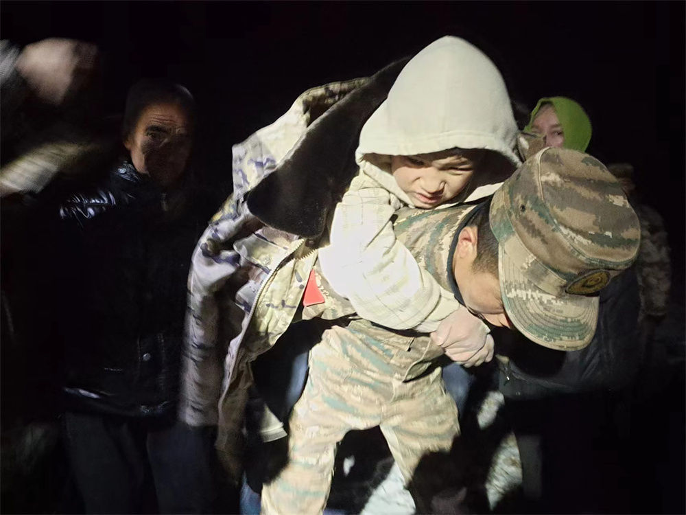 12月19日,武警甘肃总队临夏支队官兵在甘肃省临夏回族自治州积石山县刘集乡阳屲村展开救援。新华社发(侯崇慧 摄)