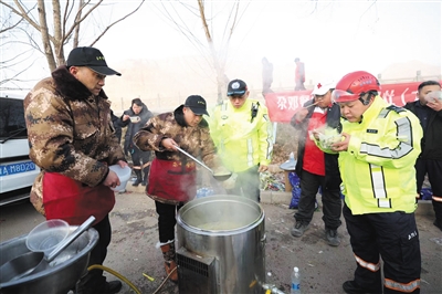 12月20日,大河家镇,一位餐饮店老板带着员工为灾区提供免费早餐。