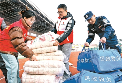 甘肃省临夏州积石山县6.2级地震发生后,多地组织力量为灾区群众送去被子、毛毯等爱心物资,将温暖传递到受灾地区的每一个角落。