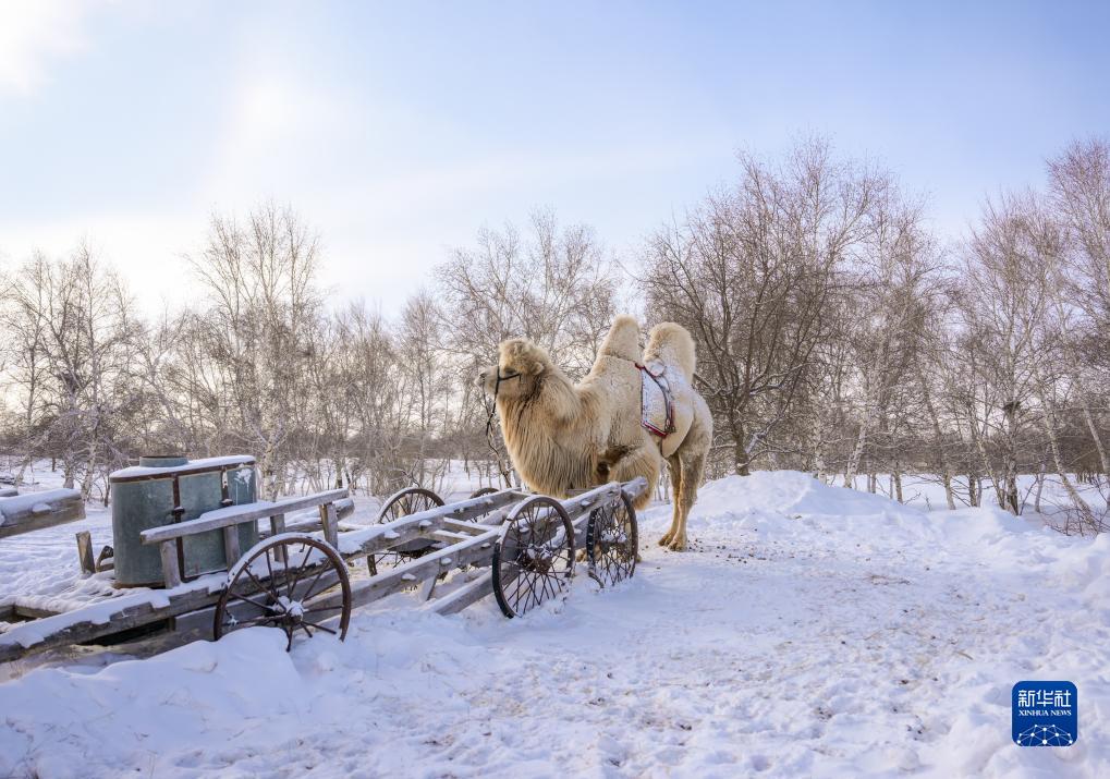 这是12月20日拍摄的西乌珠穆沁旗草原上牧民家的骆驼。新华社记者 彭源 摄