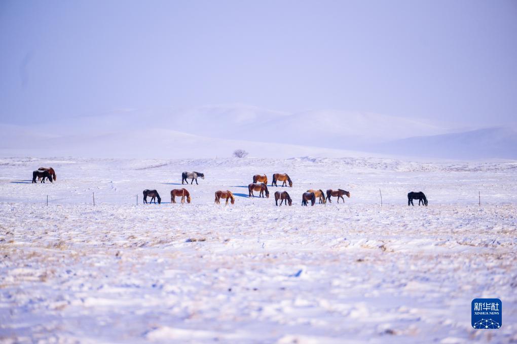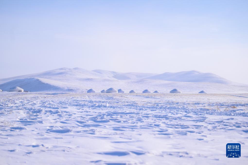 寒冬时节,内蒙古锡林郭勒盟西乌珠穆沁旗的草原白雪皑皑、银装素裹,呈现出独特的冬日美景。