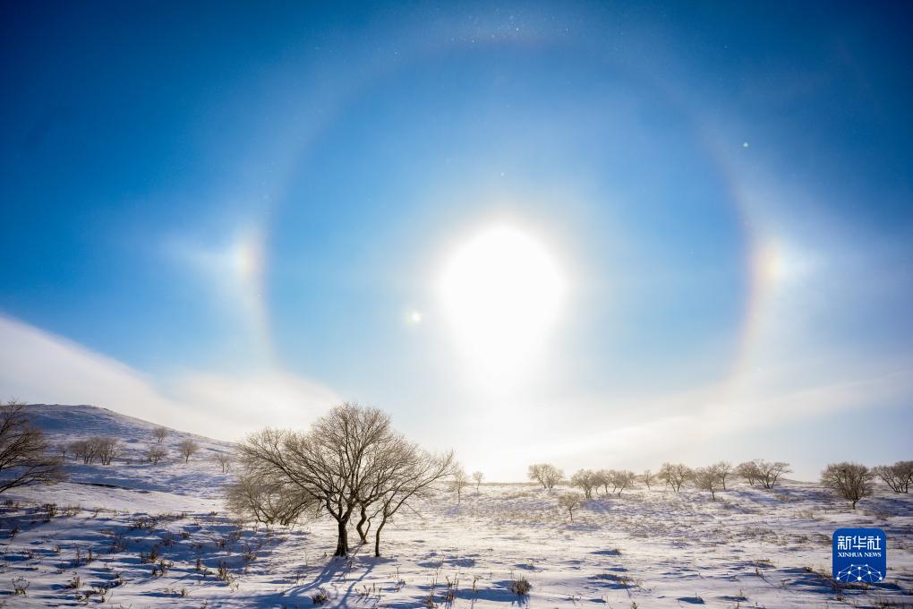 这是12月20日在西乌珠穆沁旗草原上拍摄的的日晕景观。新华社记者 彭源 摄