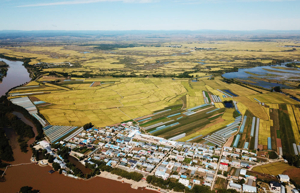 2023年9月13日拍摄的黑龙江省宁安市渤海镇小朱家村附近的稻田(无人机照片)