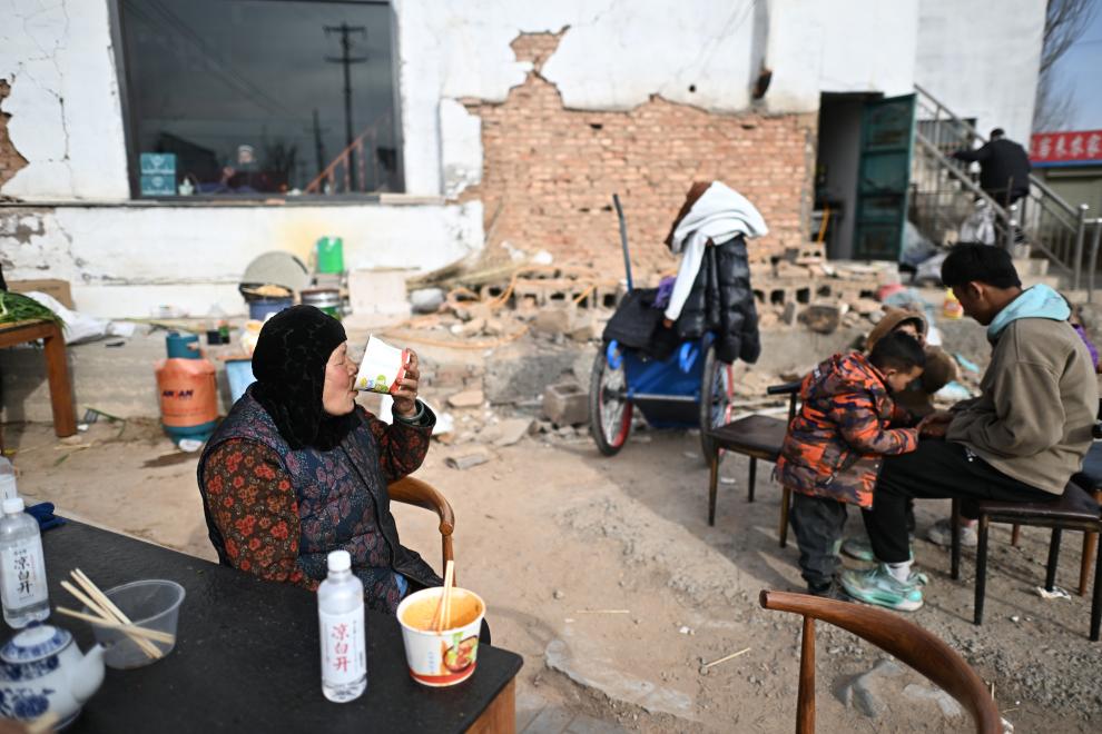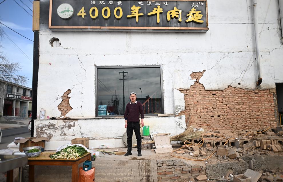 35岁的马俊海家住青海省海东市民和回族土族自治县官亭镇。在积石山6.2级地震中,马俊海家中经营的拉面馆与瓷砖店受损。地震发生后,马俊海和家人顾不上抢救受损的财产,而是忙着帮助邻居们开展自救。