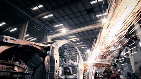 在位于重庆市万州区的重庆长安跨越车辆有限公司,工作人员在生产线上忙碌(2023年11月27日摄)。新华社记者 唐奕 摄