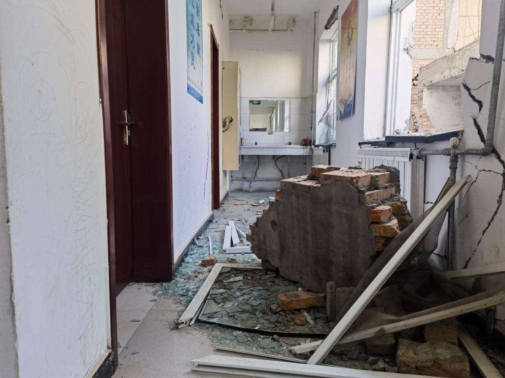 12月21日,大河家镇派出所内受损严重的办公楼。新华社记者 胡伟杰 摄