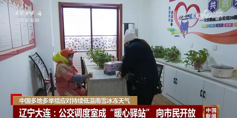 在辽宁大连,严寒天气下,一些临近居民区、菜市场、商业区的公交调度室临时向市民开放,供路过市民歇脚、暖身。