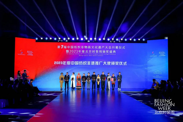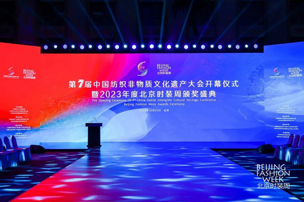 12月21日晚,第七届中国纺织非物质文化遗产大会开幕仪式暨2023年度北京时装周颁奖盛典在北京天伦王朝酒店举办。颁奖盛典作为北京时装周的年度重磅,此次携手中国纺织非遗大会,成为北京时装周“北京非遗时尚文化孵化平台”年度系列活动的又一重要篇章。