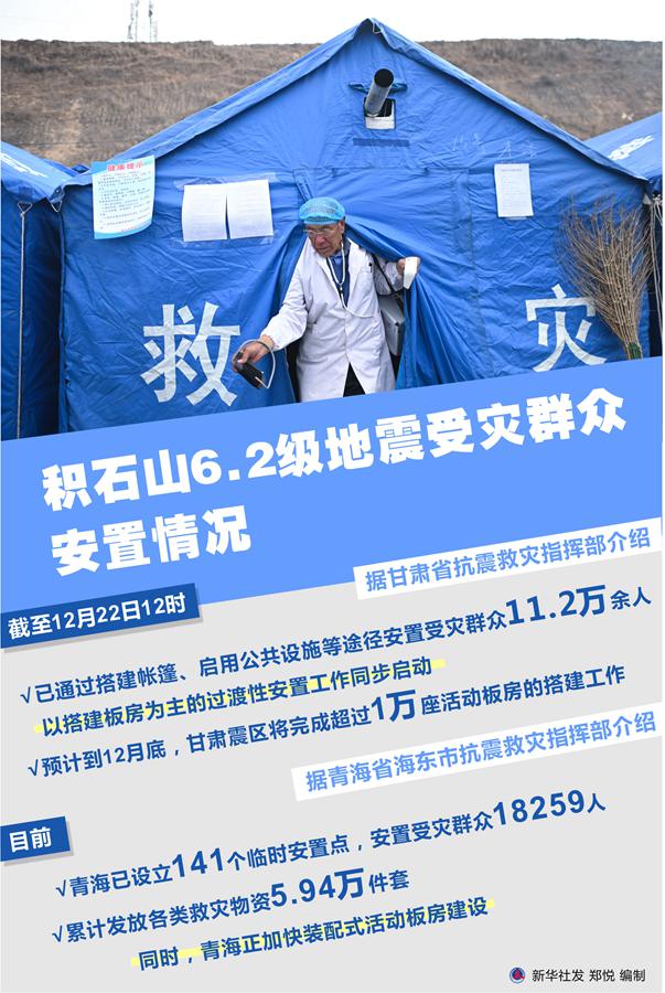 据甘肃省抗震救灾指挥部介绍,受灾群众安置采取集中、分散相结合的方式。截至22日12时,已通过搭建帐篷、启用公共设施等途径安置受灾群众11.2万余人。以搭建板房为主的过渡性安置工作同步启动,预计到12月底,甘肃震区将完成超过1万座活动板房的搭建工作,确保群众温暖过冬。