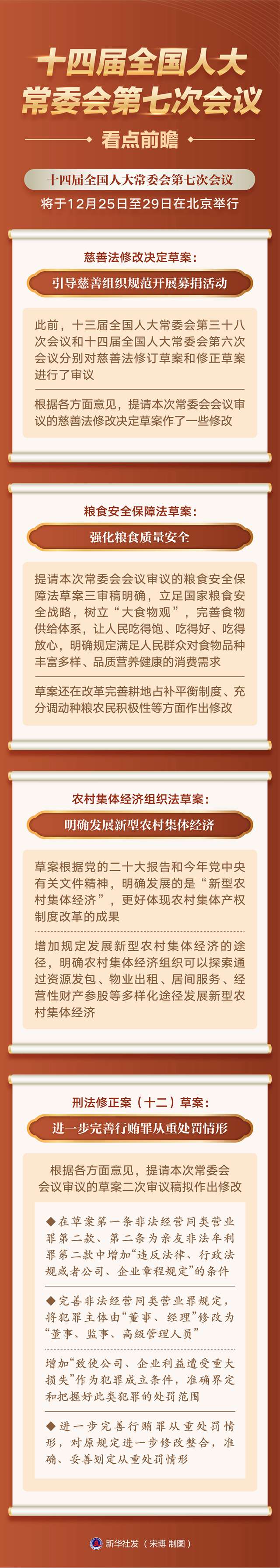 十四届全国人大常委会第七次会议将于12月25日至29日在北京举行。在22日举行的记者会上,全国人大常委会法制工作委员会发言人臧铁伟就即将提请本次常委会会议审议的部分法律案相关情况进行了介绍。