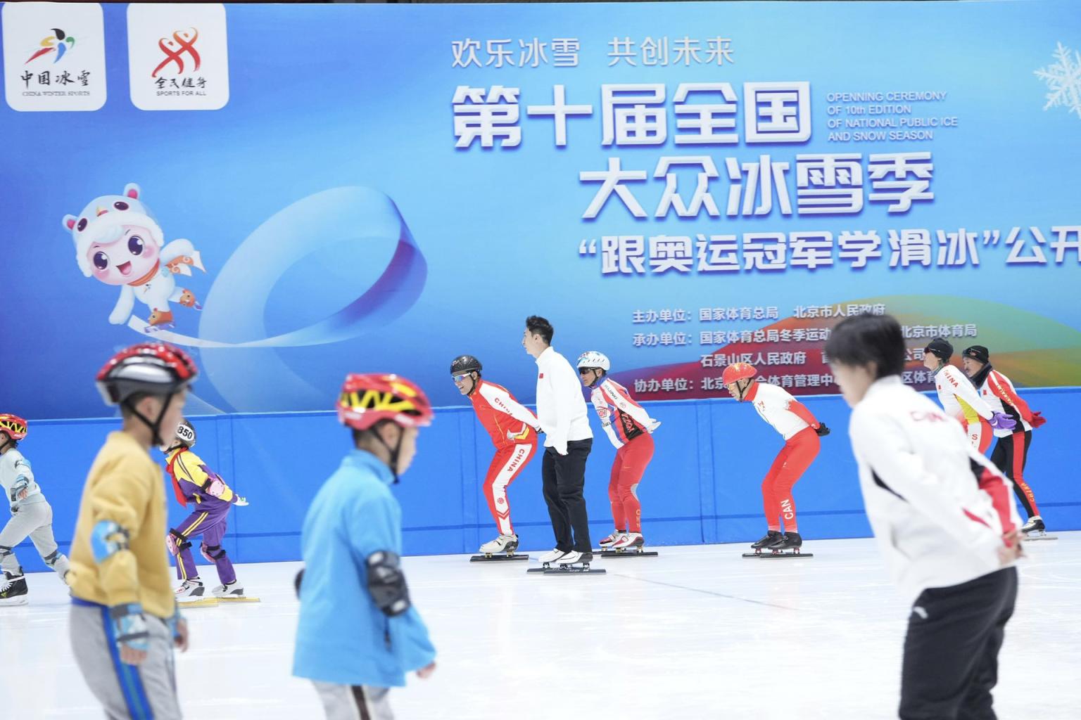 在23日进行的“跟奥运冠军学滑冰”公开课上,北京冬奥会短道速滑混合团体接力冠军武大靖、任子威、范可新、曲春雨、张雨婷现身冰场,与参加活动的群众互动。“任子威哥哥的步伐特别顺畅,滑一步能‘飞’出好几米,太快了。”9岁的石景山区电厂路小学学生吕欣彤说,跟在奥运冠军身后,有助于自己矫正姿势,“他还让我们一定要把基础打好,别急于加速度。”