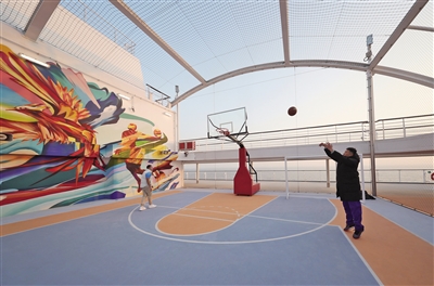 12月24日,游客在甲板篮球场打球。