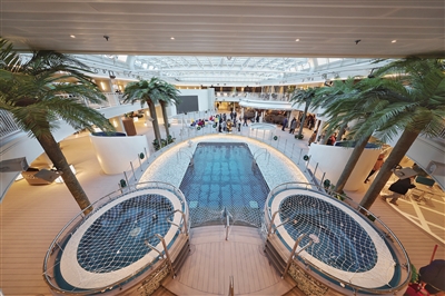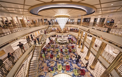 12月23日,邮轮内的公共休闲区。