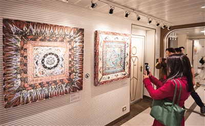 12月23日,游客在观看《念念敦煌:数字敦煌走进爱达邮轮》艺术展。