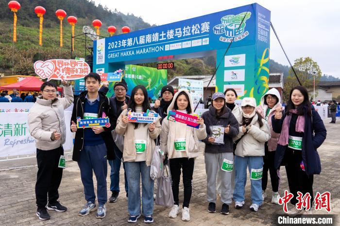 中新网漳州12月24日电 (记者 张金川)12月24日上午,2023年第八届南靖土楼马拉松赛开跑,正在参加“团聚冬至”主题交流活动的两岸青年共同参加趣味跑、一起向前冲,他们在体验马拉松赛紧张刺激的同时,饱览福建土楼这一世界文化遗产,激发两岸青年的文化自豪感,提升文化自信。