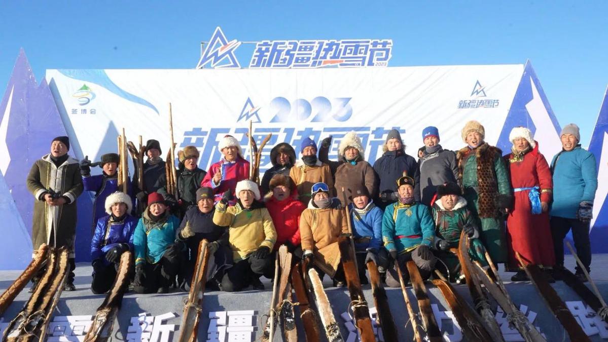 开赛仪式上,20名运动员脚踏毛皮滑雪板从雪道驰骋而下。有着“中国雪都”之称的新疆阿勒泰,又被称为“人类滑雪起源地”,当地人使用的毛皮滑雪板被认为是最古老的滑雪板之一。如今,毛皮滑雪板不仅成了阿勒泰地区的文化符号,更成为旅游热销产品。