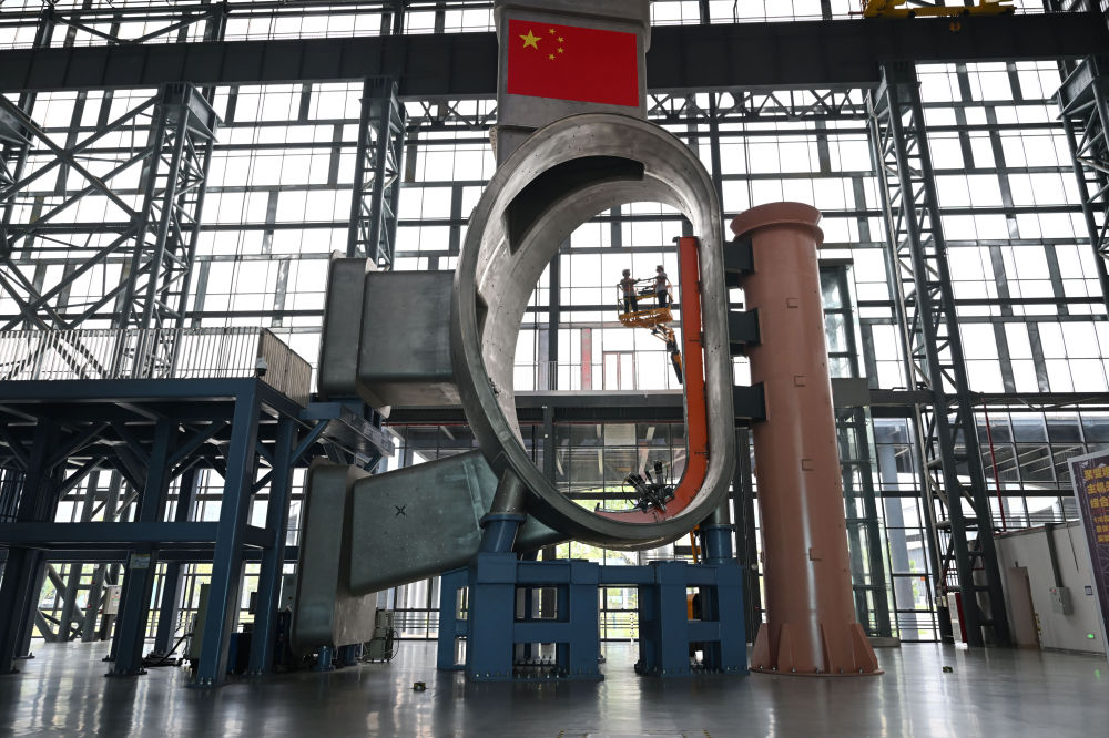 2023年9月15日,工作人员在聚变堆主机关键系统综合研究设施(CRAFT)1/8真空室及总体安装实验平台进行设备调试。新华社记者 周牧 摄