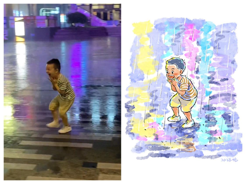 是下雨天冲进雨里蹦跶