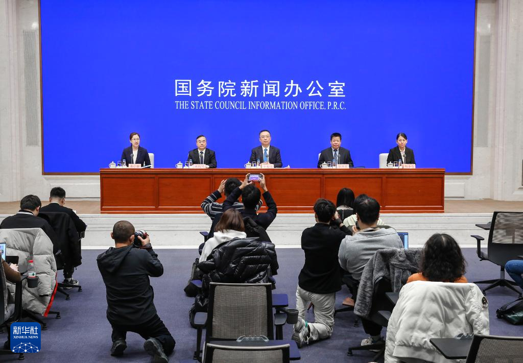 12月26日,国务院新闻办公室在北京举行国务院政策例行吹风会,请国家发展改革委副主任李春临,工业和信息化部产业政策与法规司司长黎烈军,交通运输部新闻发言人、政策研究室主任刘鹏飞,市场监管总局竞争政策协调司负责人赵春雷介绍加快建设全国统一大市场工作进展情况,并答记者问。新华社发(刘健 摄)
