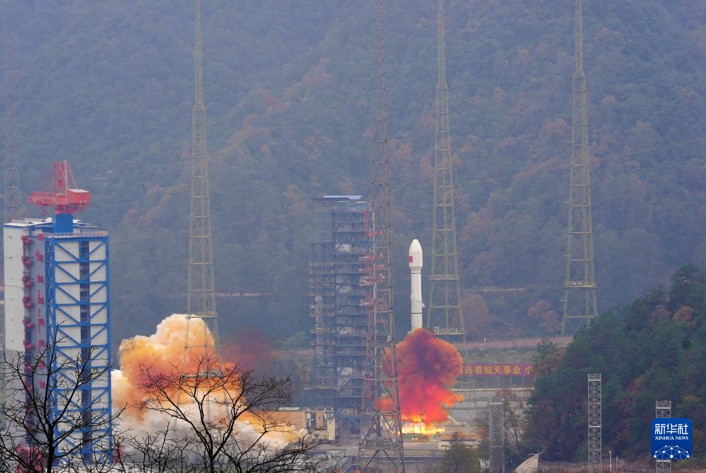 12月26日11时26分,我国在西昌卫星发射中心用长征三号乙运载火箭与远征一号上面级,成功发射第57、58颗北斗导航卫星。 新华社发(邱立军 摄)