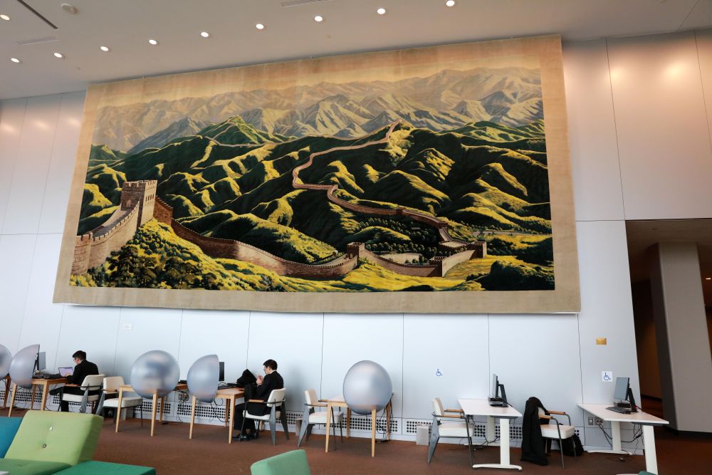↑2023年11月23日,在纽约联合国总部拍摄的长城壁毯。(新华社记者 谢锷 摄)
