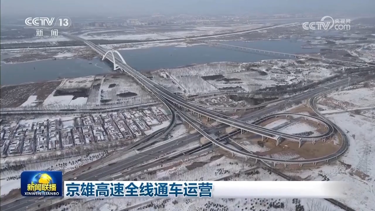 央视网消息(新闻联播):今天(12月28日),全长14.8公里的京雄高速北京段五环至六环段开通,与去年年底开通的六环至市界段相连,跨越大兴、房山、丰台等区域,全线采用双向八车道。25公里的京雄高速北京段和2021年底已通车的京雄高速河北段相连后,全长102公里的京雄高速实现全线通车,这也是北京连接雄安新区最为便捷的快速交通走廊,可实现1小时内通达。京雄高速安装了大量智能感知设备,覆盖5G专网,是我国示范性的“智慧公路”。