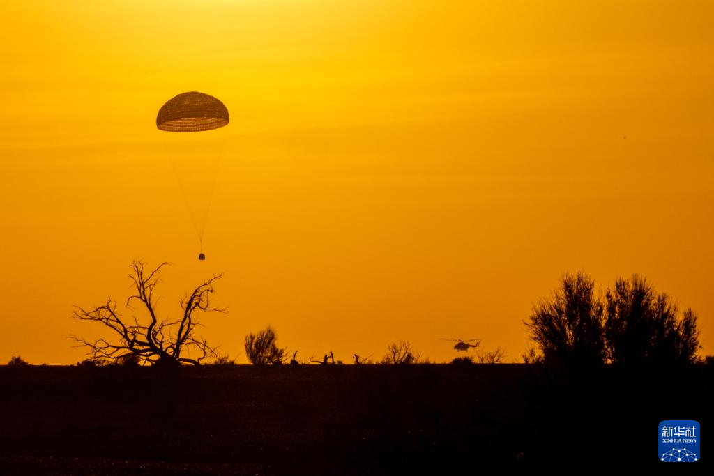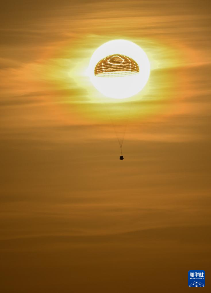 6月4日,神舟十五号载人飞船返回舱在东风着陆场成功着陆,神舟十五号载人飞行任务取得圆满成功。新华社记者 任军川 摄