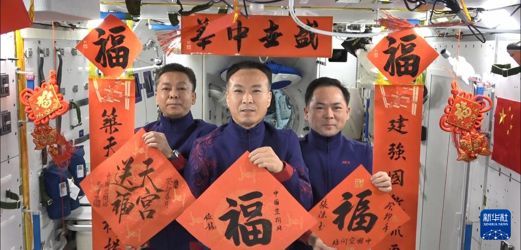 2023年新春将至,神舟十五号乘组3名航天员通过视频向祖国和人民送上新春祝福(视频截图)。新华社发
