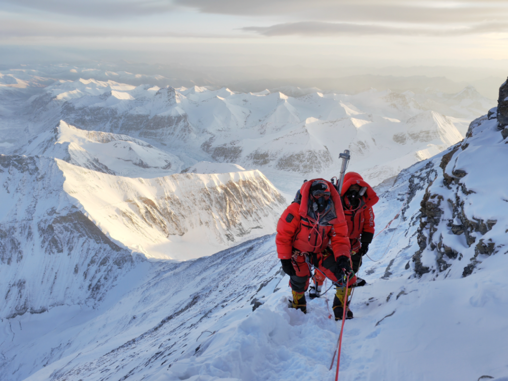 2023年5月23日,2023年珠峰科考登顶队员在冲顶。新华社特约记者 拉巴 摄