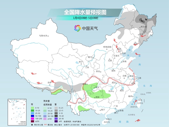 昨天,我国大部地区降水稀少,仅内蒙古东北部、黑龙江西部、新疆北部等地部分地区出现小雪。
