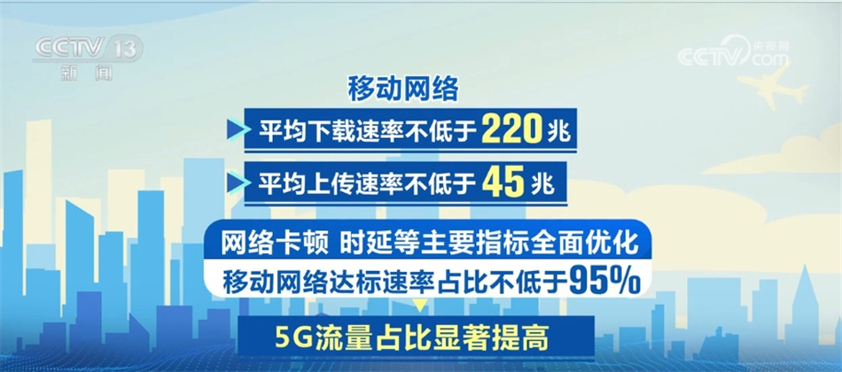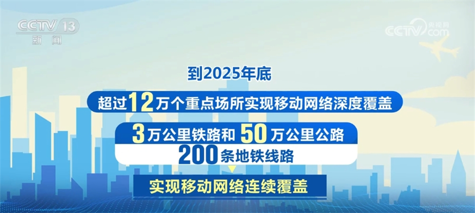 专项行动面向政务中心、文旅、医疗机构、高等学校、交通枢纽等11个重点场景加强网络覆盖。到2025年底,超过12万个重点场所实现移动网络深度覆盖、3万公里铁路和50万公里公路、200条地铁线路实现移动网络连续覆盖。移动网络平均下载速率不低于220兆,平均上传速率不低于45兆。网络卡顿、时延等主要指标全面优化,移动网络达标速率占比不低于95%,5G流量占比显著提高。