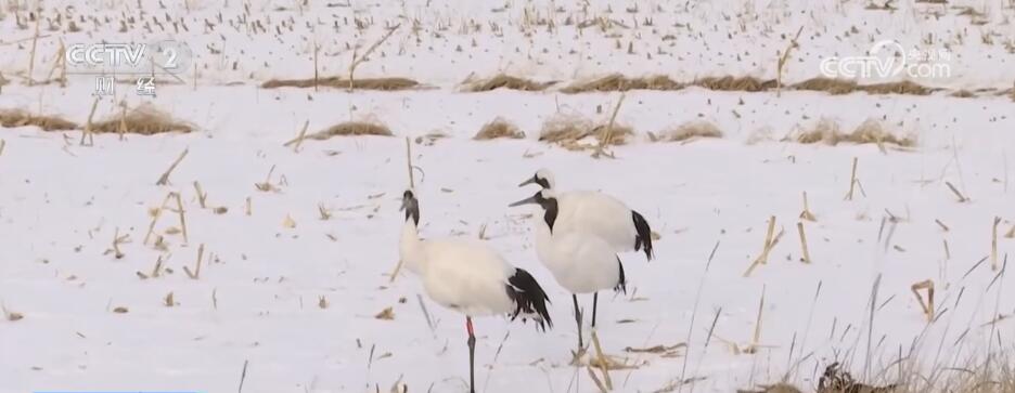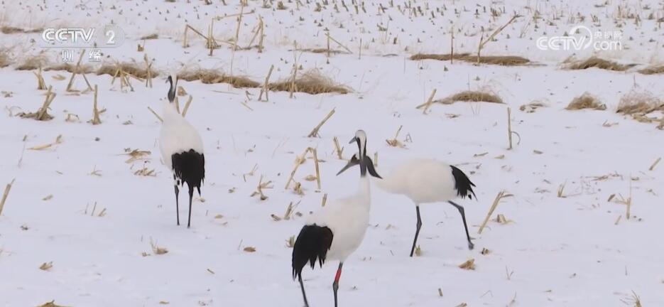 在内蒙古乌兰察布市凉城县的一处开阔地,三只丹顶鹤时而远眺观望、时而低头觅食。丹顶鹤是国家一级重点保护野生动物,全球数量仅2000余只。丹顶鹤每年春季2月末3月初会前往内蒙古以及东北三省的繁殖地,而后又会在每年秋季9月末到10月初开始离开繁殖地往南迁徙,11月初开始分批到达江苏盐城等地。本次发现丹顶鹤在内蒙古地区越冬,初步猜测是由于食物来源比较充足。此外,为了保护好这些越冬的丹顶鹤,当地各部门也都做好了准备,随时跟踪监测,保障丹顶鹤的安全。