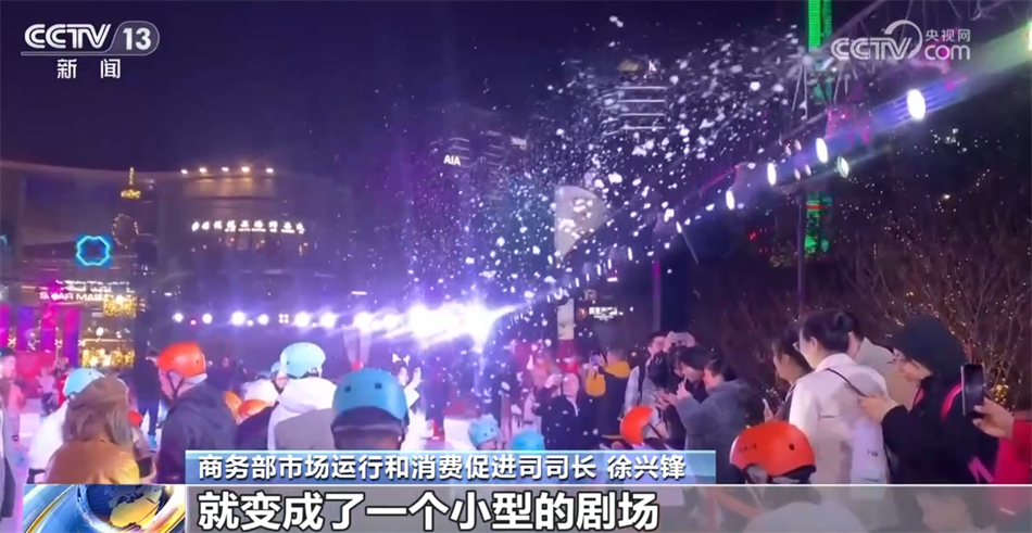 商务部市场运行和消费促进司司长 徐兴锋:比如说策展型零售,白天是个商场,到了晚上它可能就变成一个咖啡厅,然后还有很多营业的场所就变成了一个小型的剧场,很受年轻人的欢迎。我们通过坚持业态的融合,然后部门联动,不断发现、打造这些场景,然后进行推广。