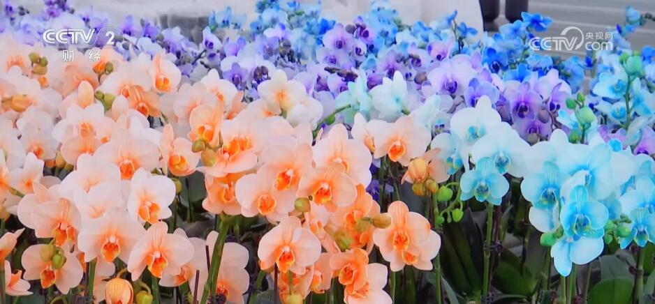 为了满足市场需求,该基地还推出“活体染色”蝴蝶兰,让其根茎在生长时吸收足够多的天然色素,从而花瓣呈现出蓝色、橙色等各种色彩。