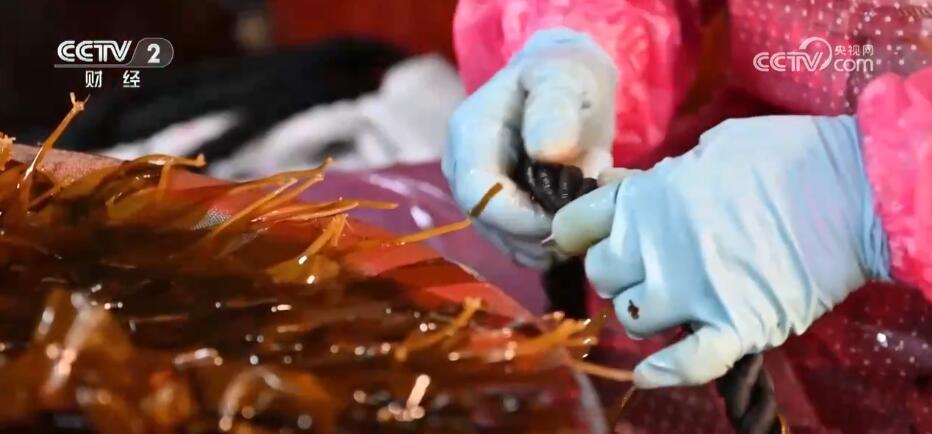 福清市海带养殖户 魏贤忠:现在是海带分苗的黄金期,我们每天早上一点多就起床,赶着这段黄金期(分苗),一天的产量大概1000多条。