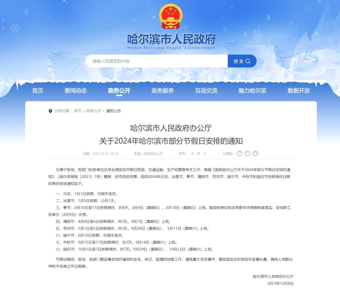来源标题:第40届国际冰雪节明天启幕,哈尔滨放假1天