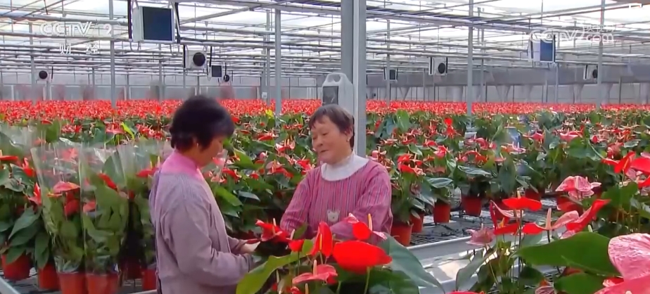 在泰州市的一个智能温室大棚里,这里的年宵花迎来第一波销售高峰。红掌、凤梨争奇斗艳,一批批花卉陆续发往全国各地。