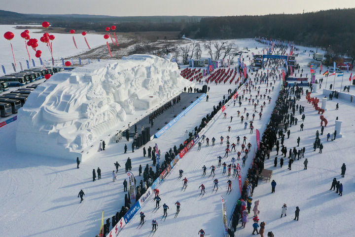 这是2024年1月4日在吉林省长春市净月潭国家森林公园举行的第22届中国长春净月潭瓦萨国际滑雪节现场。新华社记者 许畅 摄