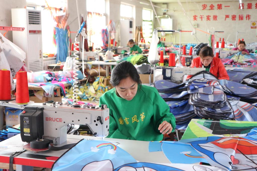 2023年12月19日,潍坊市坊子区一家风筝厂的工人在赶制订单。新华社记者 王志 摄