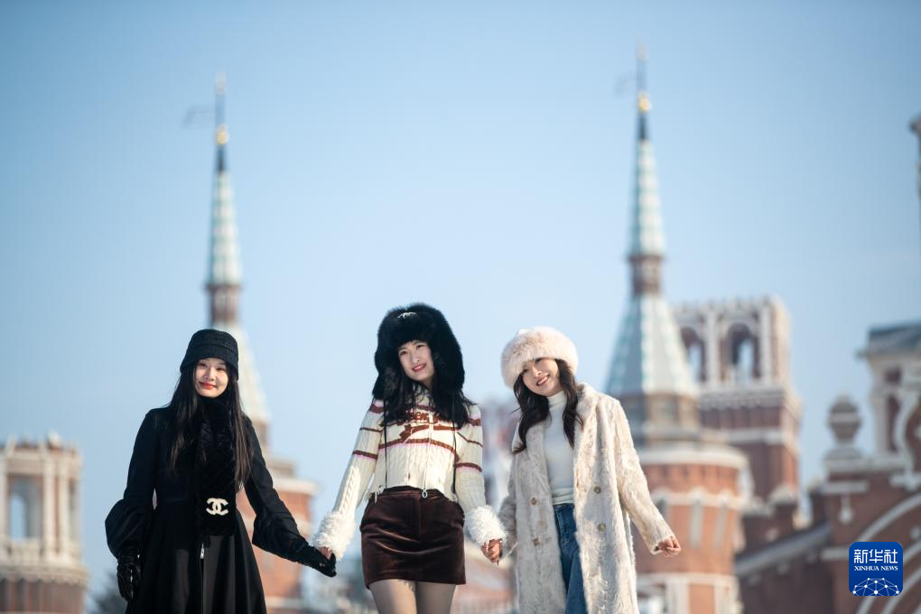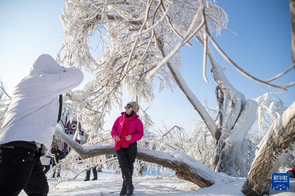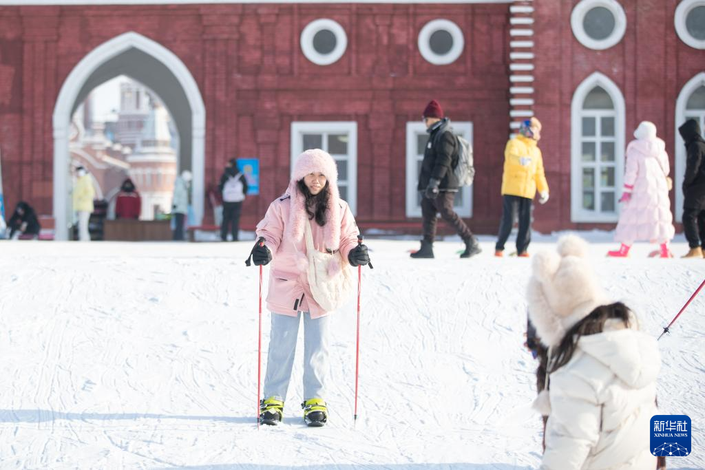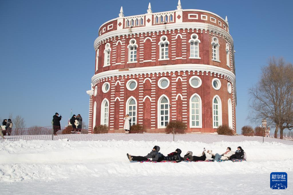 时下正值冰雪季,“冰城”哈尔滨市的著名旅游景点伏尔加庄园变身“冰雪城堡庄园”,吸引游客前来欣赏欧式建筑,享受冰雪乐趣。