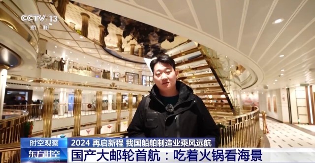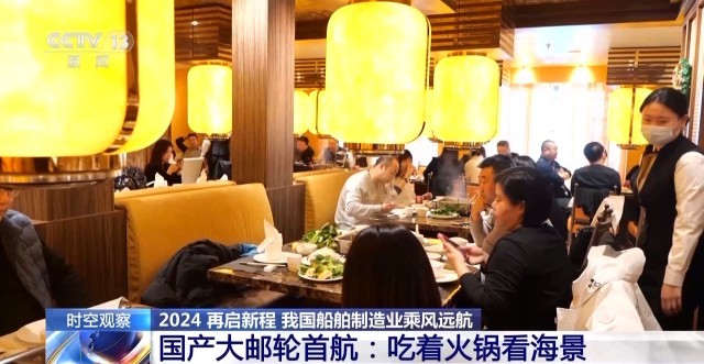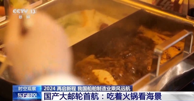 总台央视记者 吴天白:船上工作人员告诉我说,一般的邮轮是不配备火锅餐厅的,因为船在海上航行时会产生晃动,火锅汤汁很容易溅出来。而我们国产邮轮不仅重心重量设计控制得好,船两侧还有一对减摇鳍,可以减少88%左右的横摇,让游客们可以放心地围炉畅谈、大快朵颐,而这样的小细节背后也体现着我国船舶建造技术的硬核实力!