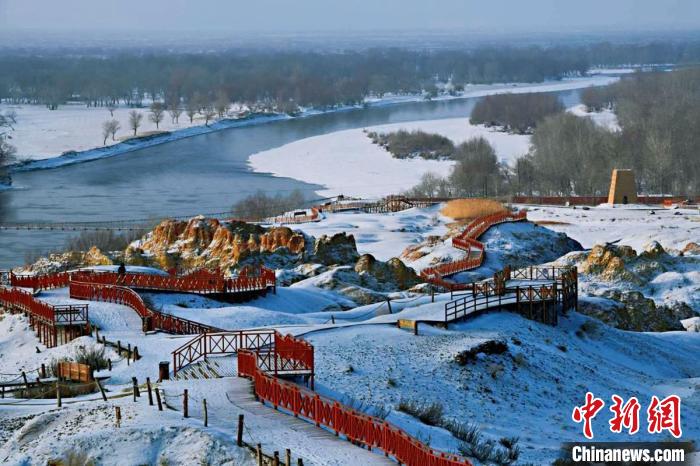 新疆阿勒泰布尔津县五彩滩景区的冬日景色。岩上松摄