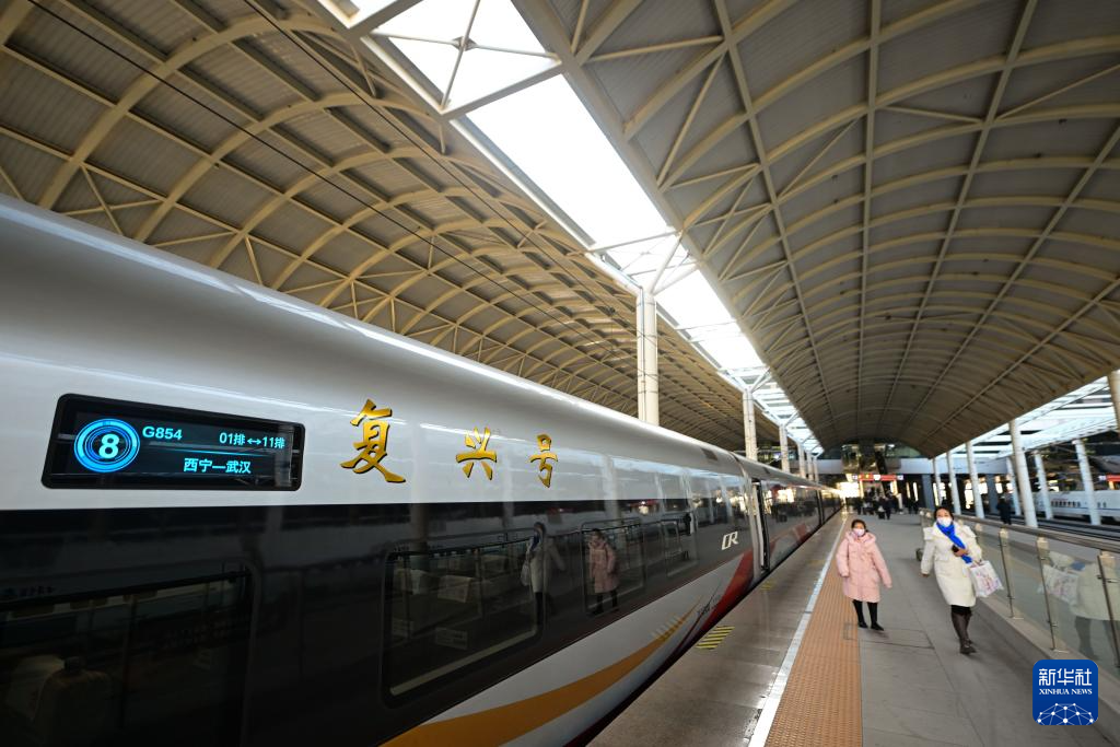 1月11日,乘客在西宁站准备搭乘复兴号智能动车组列车。