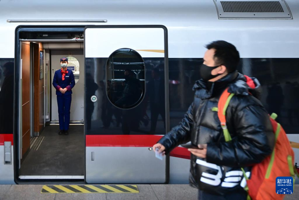 1月11日,乘客在西宁站搭乘复兴号智能动车组列车。